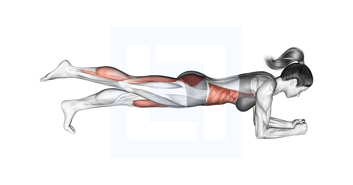 1. در حالت پلانک قرار بگیرید، آرنج‌ها زیر شانه‌ها و نوک انگشتان پا روی زمین قرار داشته باشند.